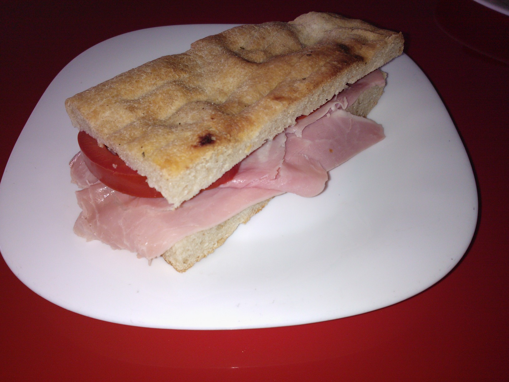 focaccia con prosciutto cotto e pomodoro